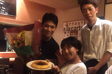 4名様以上のコースをご利用時『似顔絵ケーキ』無料サービス!3日前迄にご予約で、主役の方の似顔絵を可愛くチョコレートで!化学調味料等を一切使わずに手作りです。