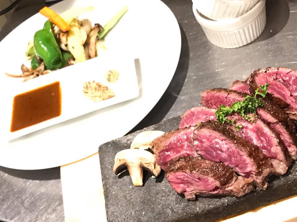 大人気!!牛サガリのステーキの岩石焼き