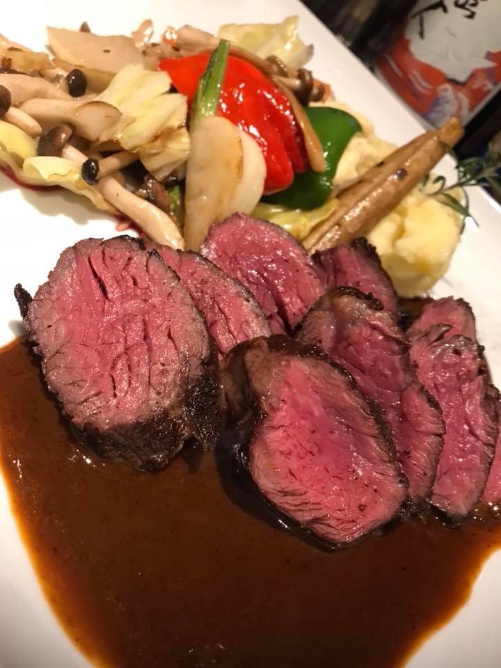 牛サガリ肉のステーキ赤ワインソース