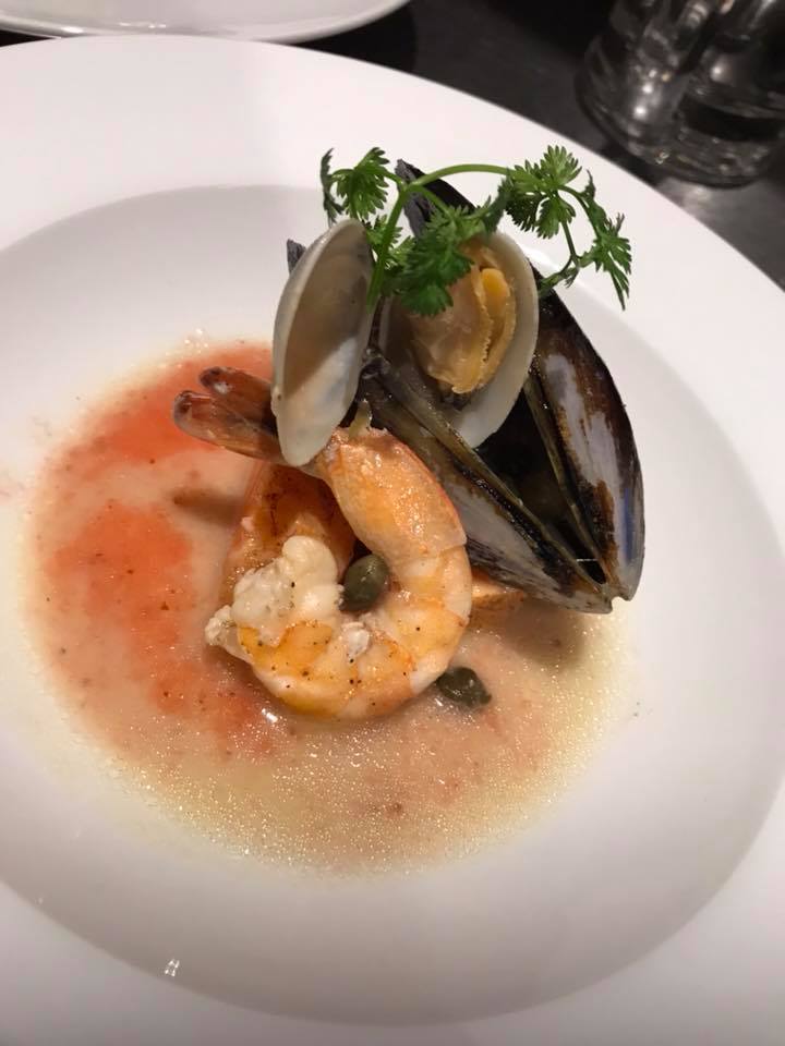 海の幸の白ワイン蒸しいちごのソースで