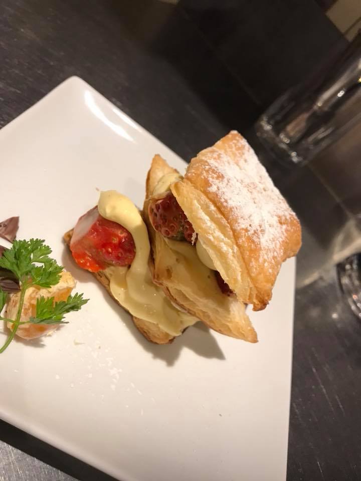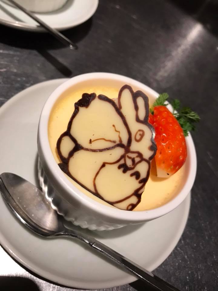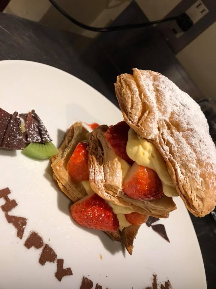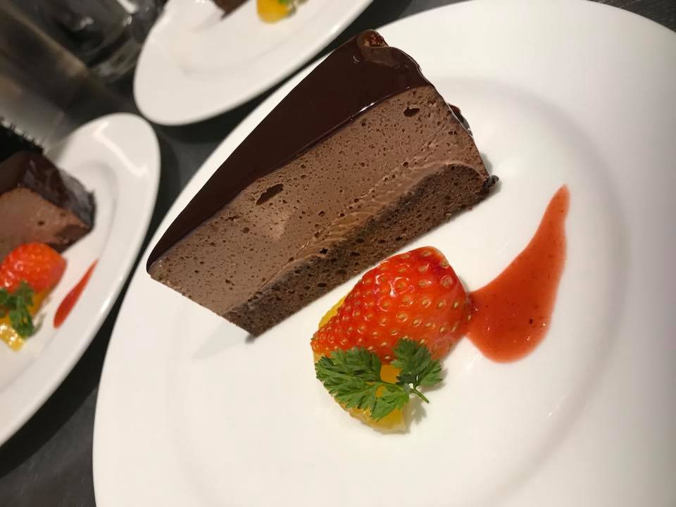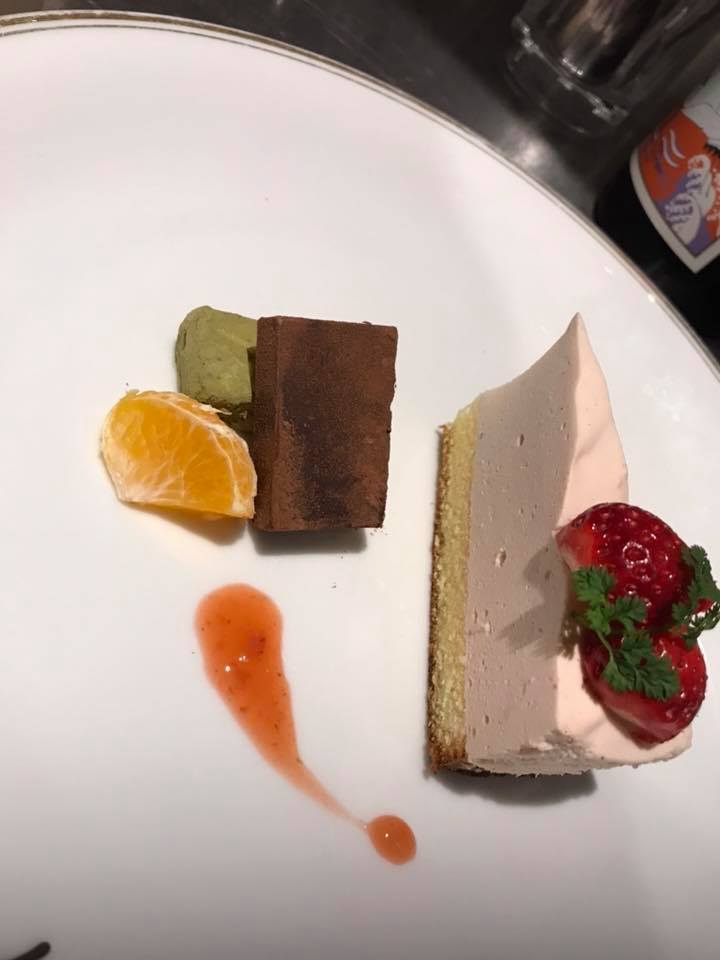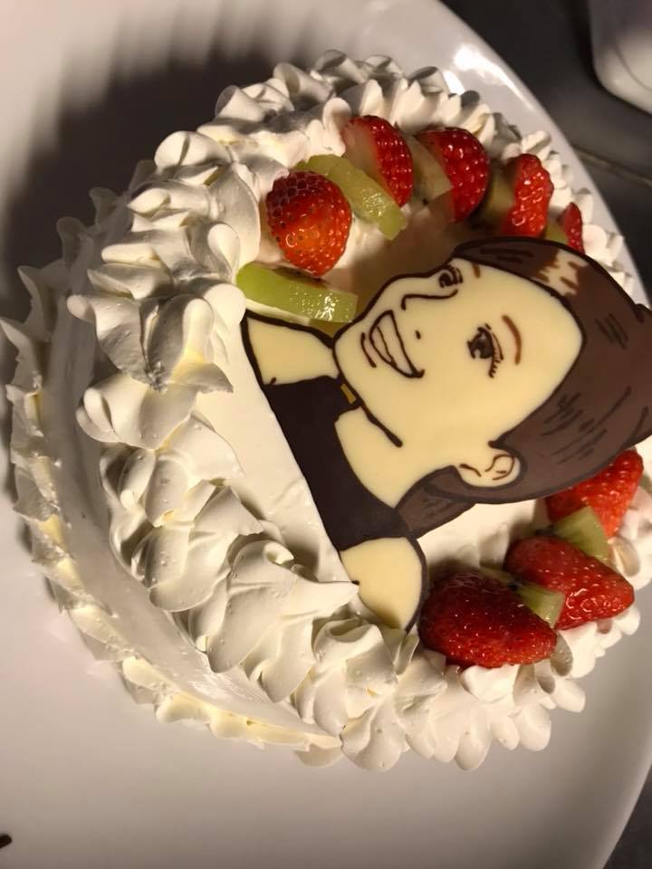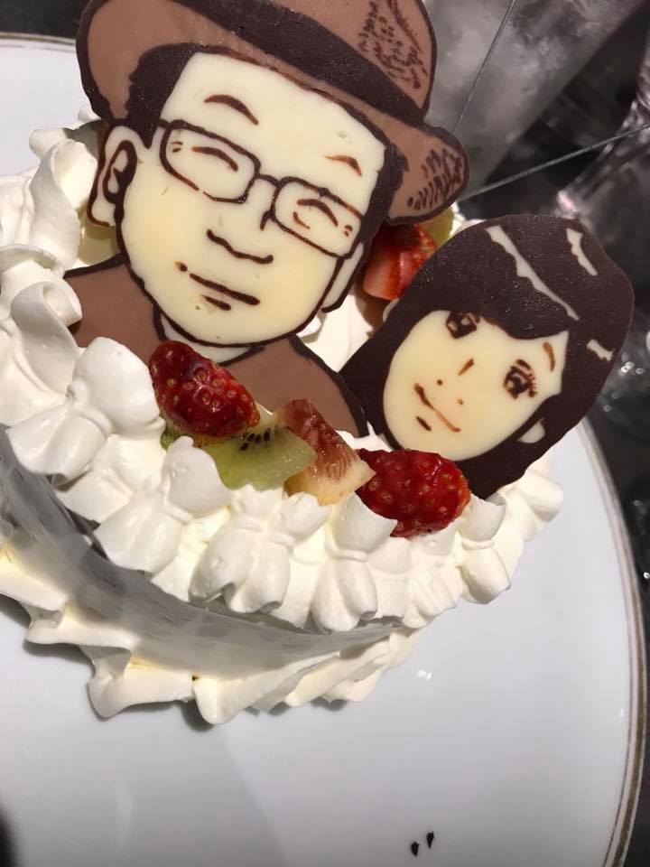 アラカルトではここから更にサプライズを致します!!そう、出てきたケーキにはなんと自分の似顔絵チョコレートがのっているではありませんか!!??
