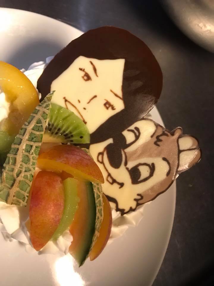 先日お作りしたサプライズ似顔絵ケーキです☆ お誕生日や送別会、歓迎会や記念日などにいかがですか?? 感動率100%!!今ならお好きなキャラクターと一緒にお描きしますよ☆