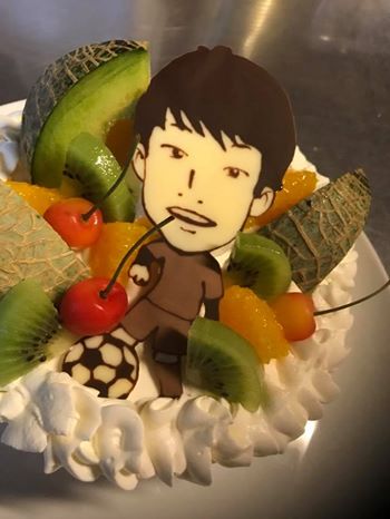 お誕生日や記念日、送別会に歓迎会…様々なサプライズがありますが… 当店の似顔絵ケーキは感動率100%を誇っていますよ♪そして今回は主役の方がサッカーをしてるとのことでしたので‥ご要望にお応えしてサッカーをしてるシーンにしてみました♪♪