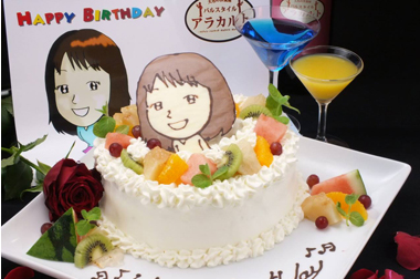 4名様以上のコースをご利用時『似顔絵ケーキ』無料サービス!3日前迄にご予約で、主役の方の似顔絵を可愛くチョコレートで!化学調味料等を一切使わずに手作りです。